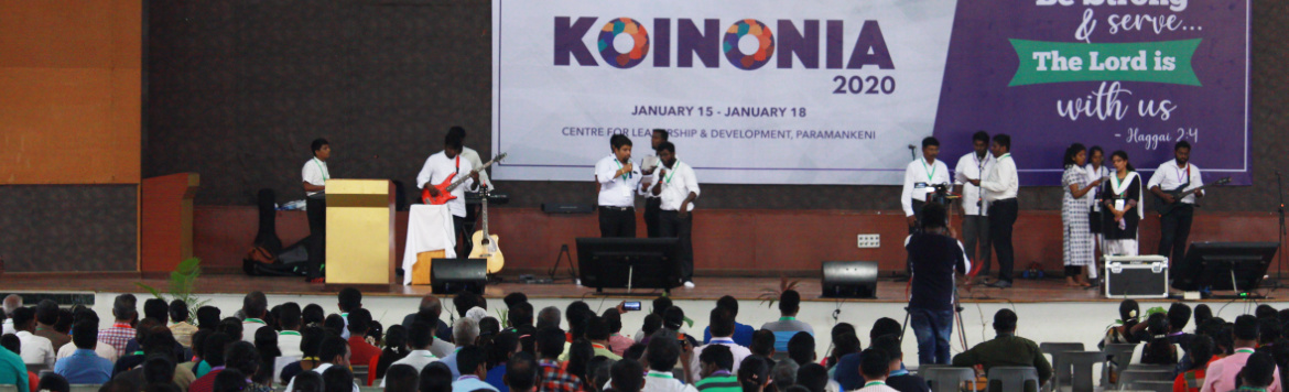 The Greek word "Koinonia / κοινωνία /", means "fellowship, or joint participation". Koinonia is the gathering of all the involvers in Students Ministry (EU & EGF) in Tamil Nadu, once in four years. The purpose of coming together is to revisit first love, strengthen our relationship with God and fellow believers, cherish God centered fellowship and reignite the vision God has given to our movement.